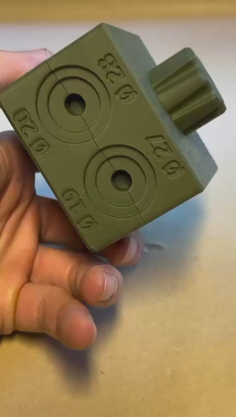Dit blok is perfect voor het schoonmaken van munten. Draai de schroef iets los, zoek de juiste maat voor uw munt. Steek de munt erin en draai de schroef weer vast. Zo kunt u het blok met één hand vasthouden en met de andere hand de munt schoonmaken, bijvoorbeeld met reinigingspotloden. Geschikt voor munten met een diameter van 15 tot 30 mm.